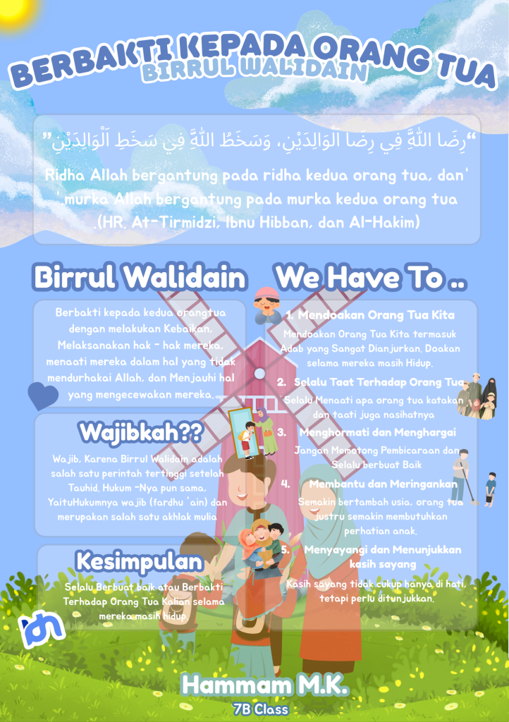 Hello Everyone! Greeting, So now i want to show my Attitude Project About Birrul Walidain. What is Birrul Walidain???? Birrul Walidai is Be devoted to your parents by doing good deeds, exercising their rights, obeying them in things that do not disobey Allah, and avoiding things that disappoint them.
